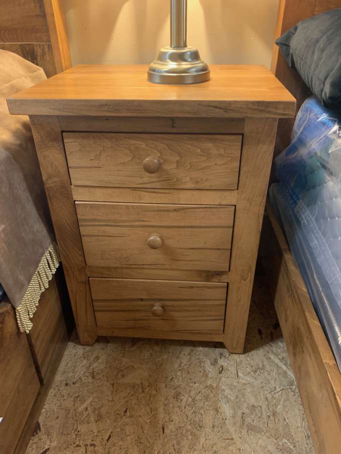 3 Drawer Night Stand - 22 inches wide, 30 inches high, 18 inches deep. Finished in our Barn Board Stain.